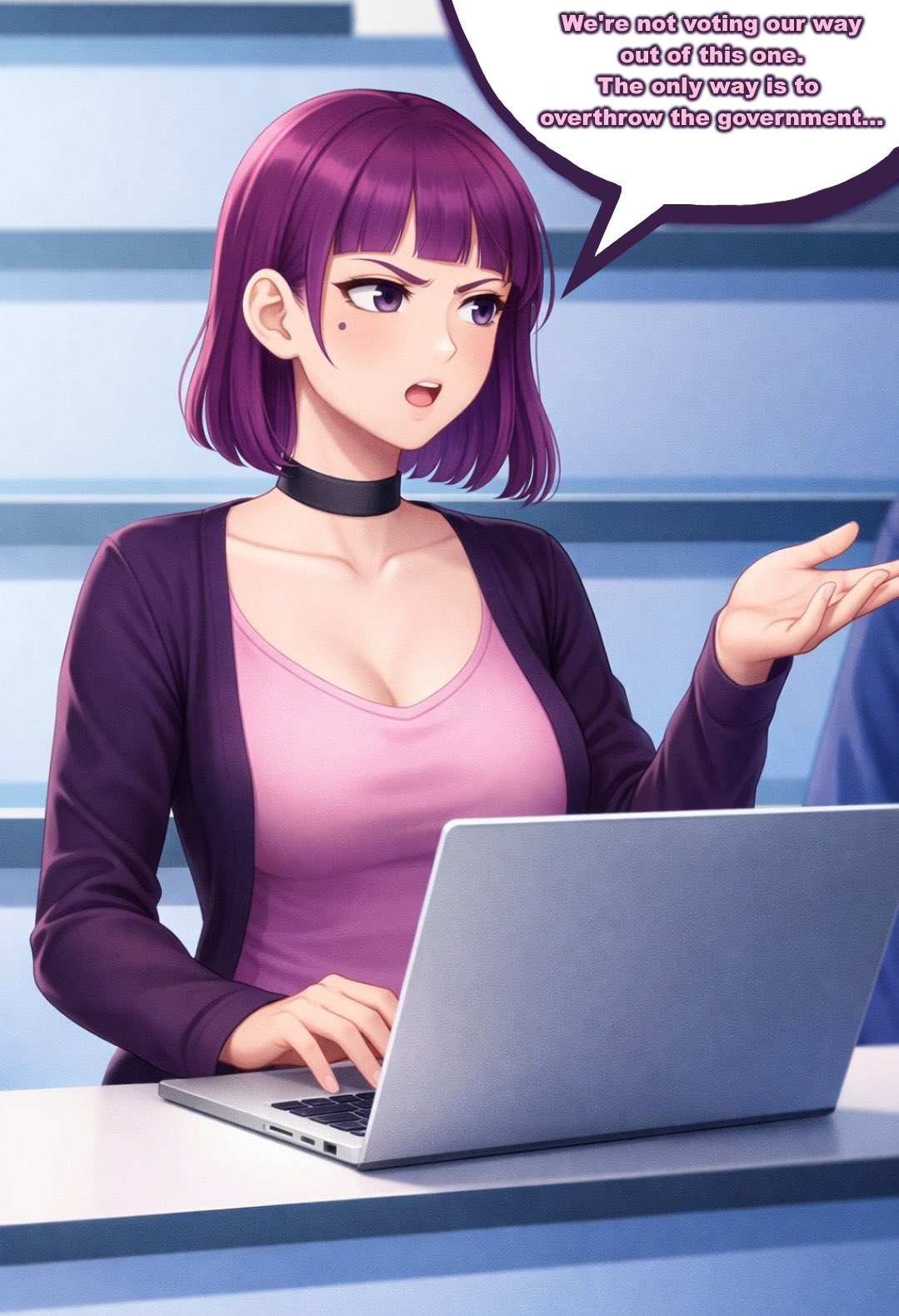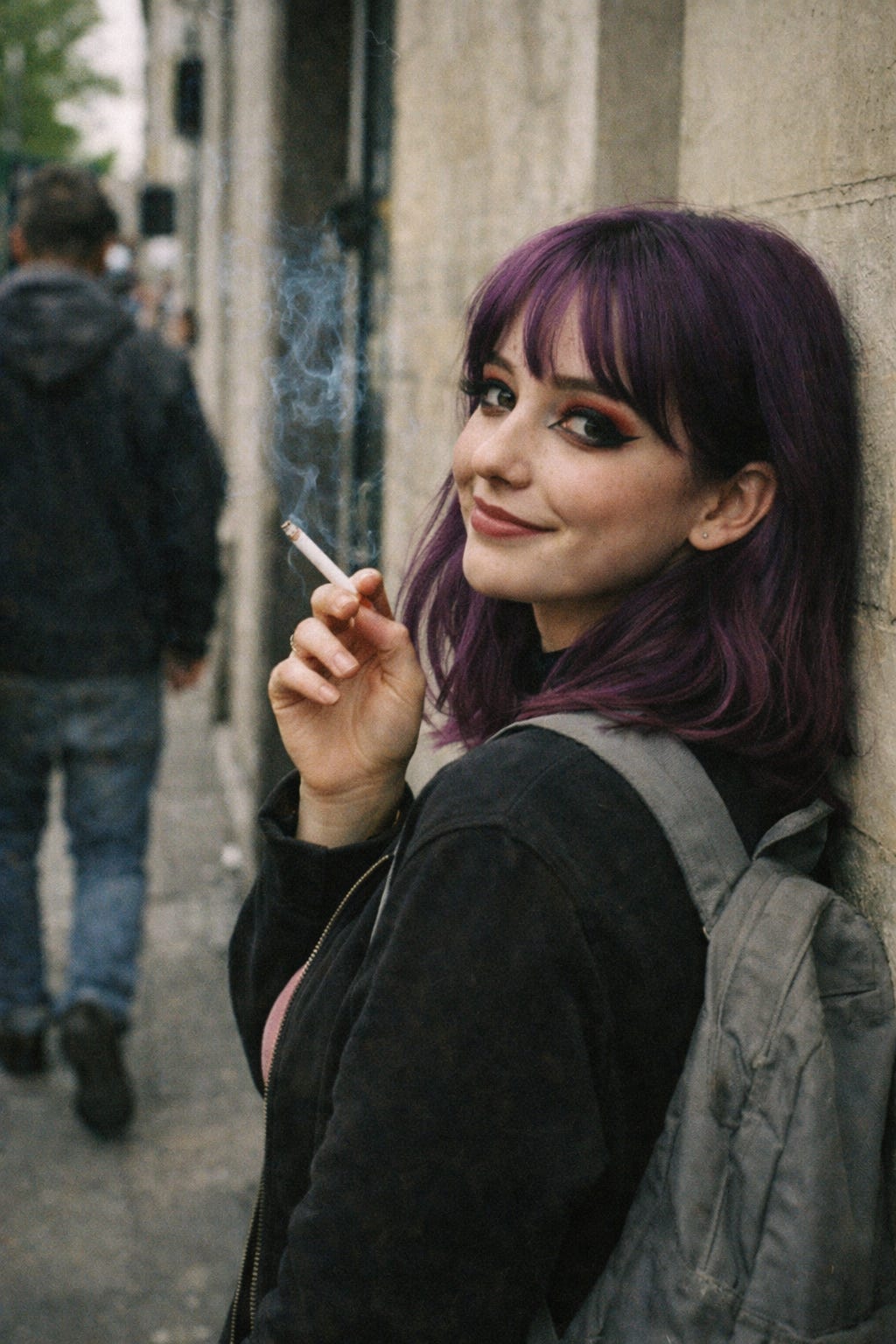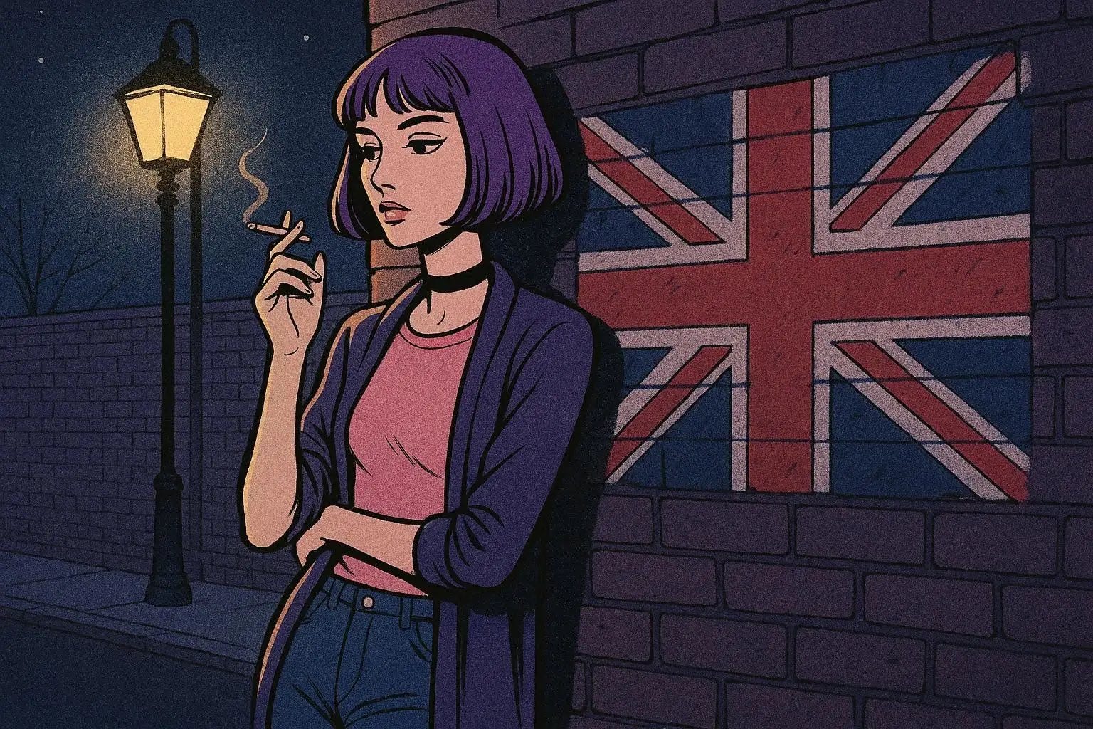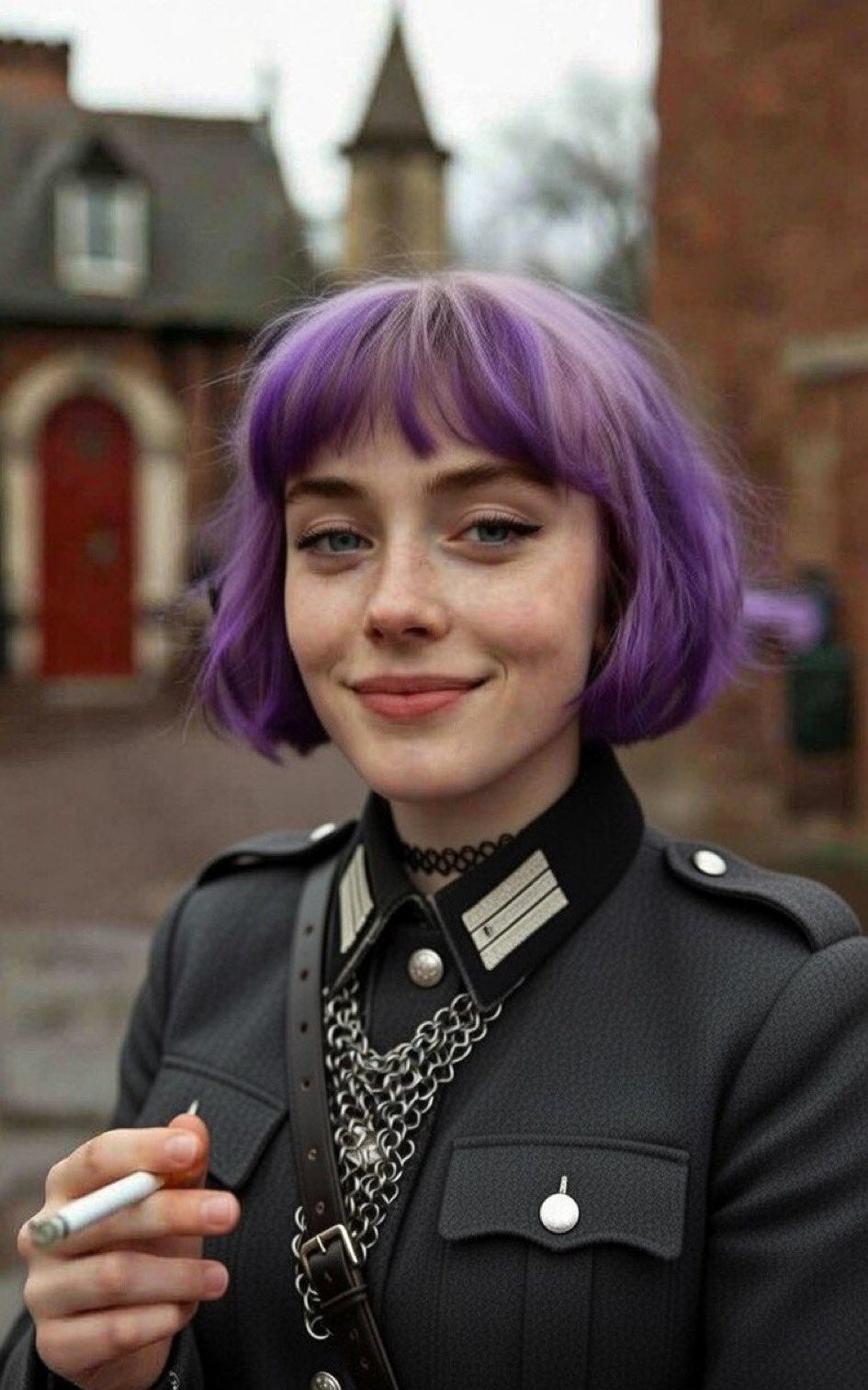 So I guess in addition to purple hair, Britishness, and racism, another of Amelia’s canonical characteristics is that she’s a smoker, which honestly fits the archetype of a rebellious alt girl. It’s possible this is my fault. Oops.