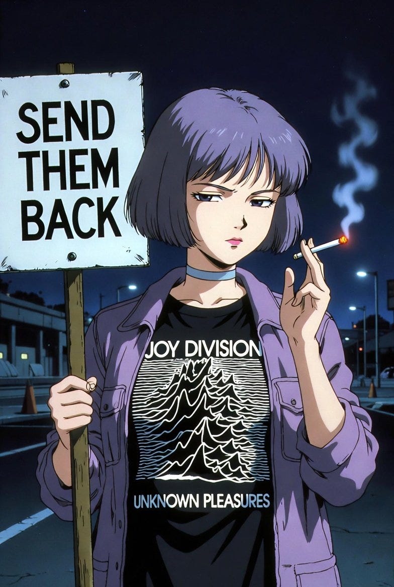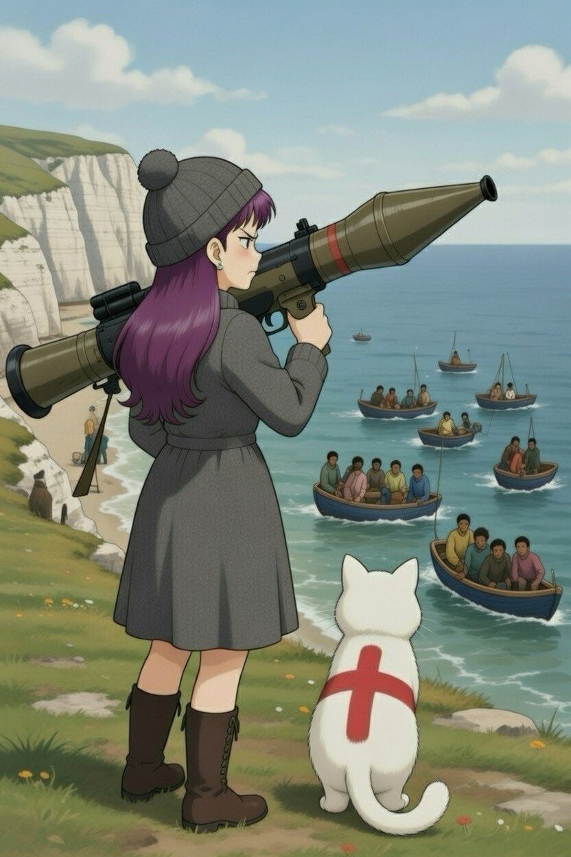 This process of digital tulpa manifestation is inherently impossible to predict. The committee men presiding over our unnecessary managed decline sense this unpredictability, and it makes them extremely nervous; the unpredictable has always made them nervous. From their perspective it introduces psychic noise into a system that relies on carefully engineered information environments, echo chambers that amplify their messaging and silence every dissonant frequency. The emergence of Amelia in particular should worry them deeply. It is bad enough when the proles are angry after Bomalian who never should have been in the country butchers little girls at a dance class get. Nativist fervour getting charged up with the sexual energy of romantic yearning for a whimsical personification of the national spirit presents an entirely different order of problem. A riot can be put down with police. What do you do when the people using magick to cast a spell on themselves, in the process not only undoing your own carefully woven enchantments, but replacing them with something stronger?