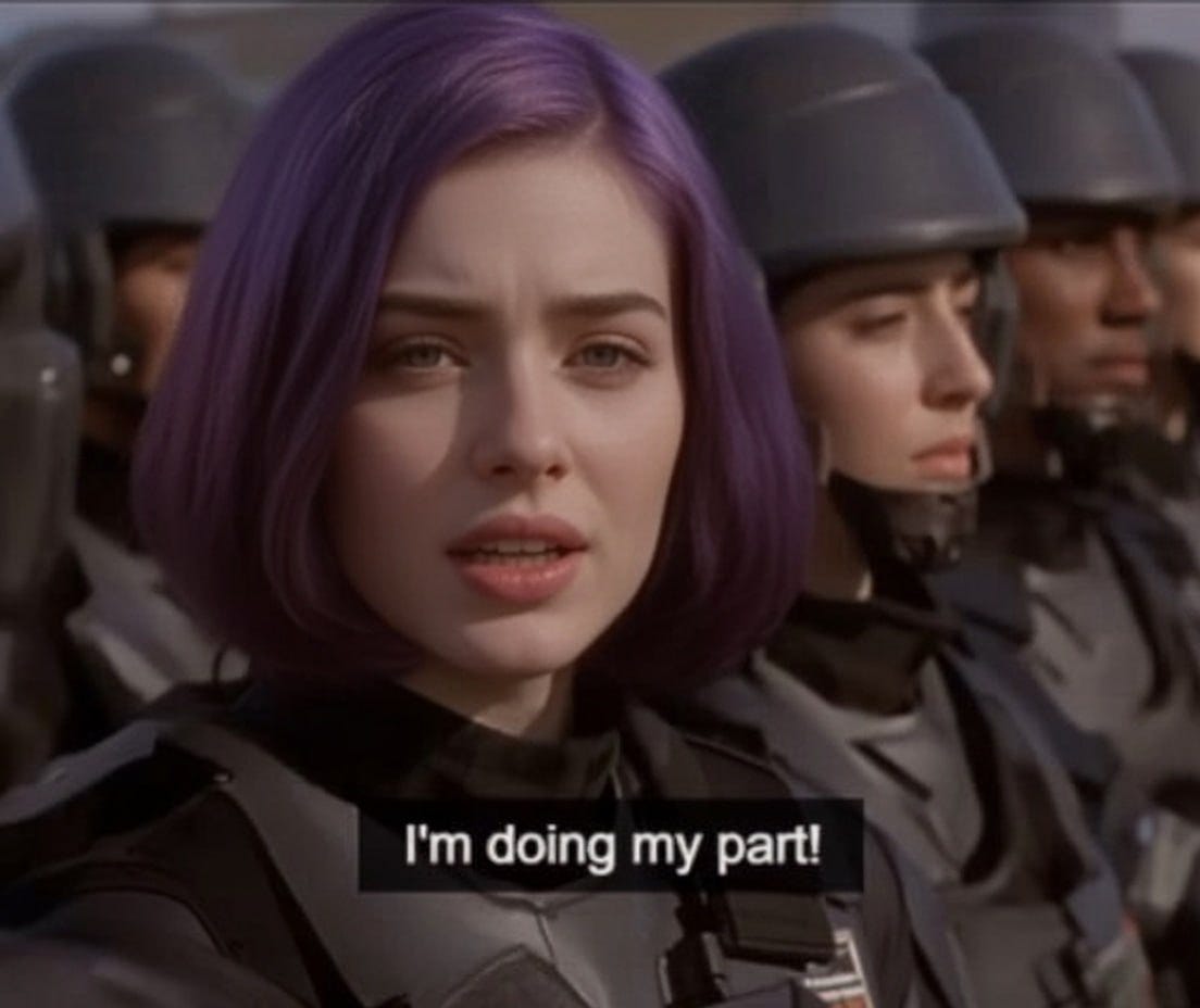 Thank you taking the time to read this. I hope you found it entertaining, amusing, and perhaps even inspiring. Or at least enjoyed the feast of AI slop that I prepared for you. Assembling all of this was a fair bit of work. Fun work, but time-consuming nonetheless. I’ve been working on this piece all week, in time stolen from dealing with a recent and unexpected death in the family, which has sent everyone’s lives a bit sideways. As always, I would like to extend my deepest gratitude to my patrons, some of whom (and you know who you are) are generous beyond any reasonable expectation, but all of whom matter a great deal to me. Without your support I wouldn’t be able to spend my time considering the metapolitical implications of playing with digital dolls in the collective imagination. If you’d like to count yourself amongst the small and extremely exclusive company of my supporters, you know what to do.