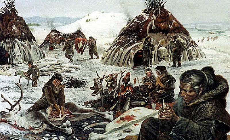 Projectile weaponry also made hunting a lot more efficient, especially for societies that learned to organize effective hunting parties so they could take down large game such as woolly rhinos, giant sloths, and the ever-iconic mastodon. Hunting and war being close cousins, societies that learned to hunt cooperatively with projectile weapons would naturally go to war using similar tactics.