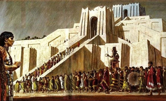 Thus, once chariots and bronze enter the picture, you've got all the selective pressures pointing in the direction of centralization and hierarchy. And, not surprisingly, this is when we start to see the priestly slave states with god-kings presiding over heaving masses of malnourished peasants fed on a subsistence diet of mildly alcoholic gruel, kept in line by a mixture of theocratic micro-management and sheer bloody terror.