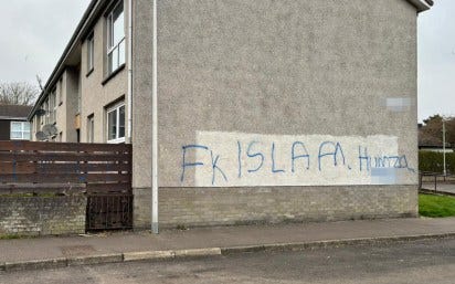 It turns out that the Scots really do not like a ban on bantz, not one bit, and respond to demands that they cease the bantz by cranking up the bantz. Yousuf, being a humourless Pakistani who is confused and angered by this entirely foreseeable reaction, has risen to the occasion with all the grace, poise, and wit you would expect. In an attempt to stem the savage tide of mockery, Yousuf has tried claiming that reporting his hate speech is hate speech (lulz); has ordered Scottish police to read verbatim a prewritten transcript defending him each time his hate speech is thrown back at him (because that doesn’t look ridiculous); and faked a hate crime against himself by having his house sprayed with graffiti (did anyone fall for this?).