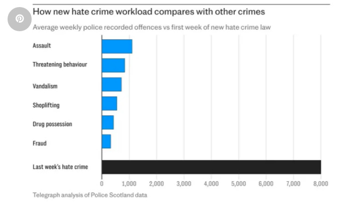 The day that the bill was finally forced through the Scottish parliament, and predictably enough for anyone who glanced at the law and had a passing understanding of the Scottish national character, the Scottish people responded by DDoSing the police with a deluge of hate crime reports, a very large number of which were reporting Yousuf’s rant as a hate crime ... which, apparently, under the strict interpretation of the new law, it certainly was, with the only thing standing between Yousuf and indictment under his own half-baked law being that his ill-considered harangue took place prior to the law being passed. Which hasn’t stopped the Scots from taking the piss and continuing to report him.