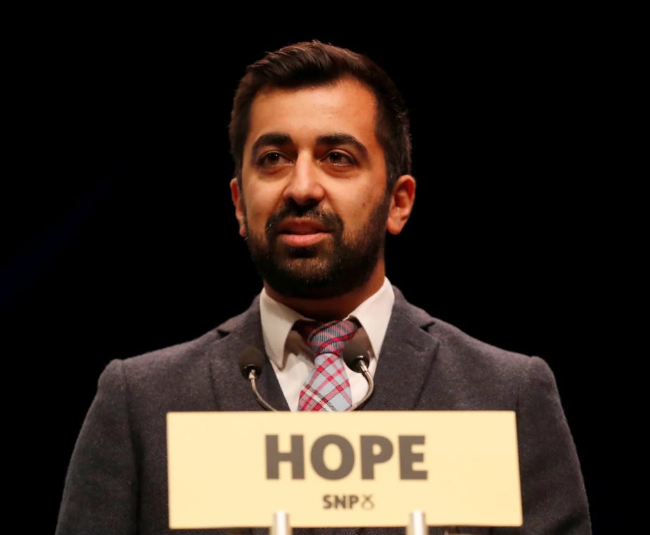 Assuming he doesn’t get removed by a leadership coup before voters sink the leaking Tory battleship, Sunak will be gone by January of 2025 at the latest. That just leaves Humza Yousuf8, characterized by