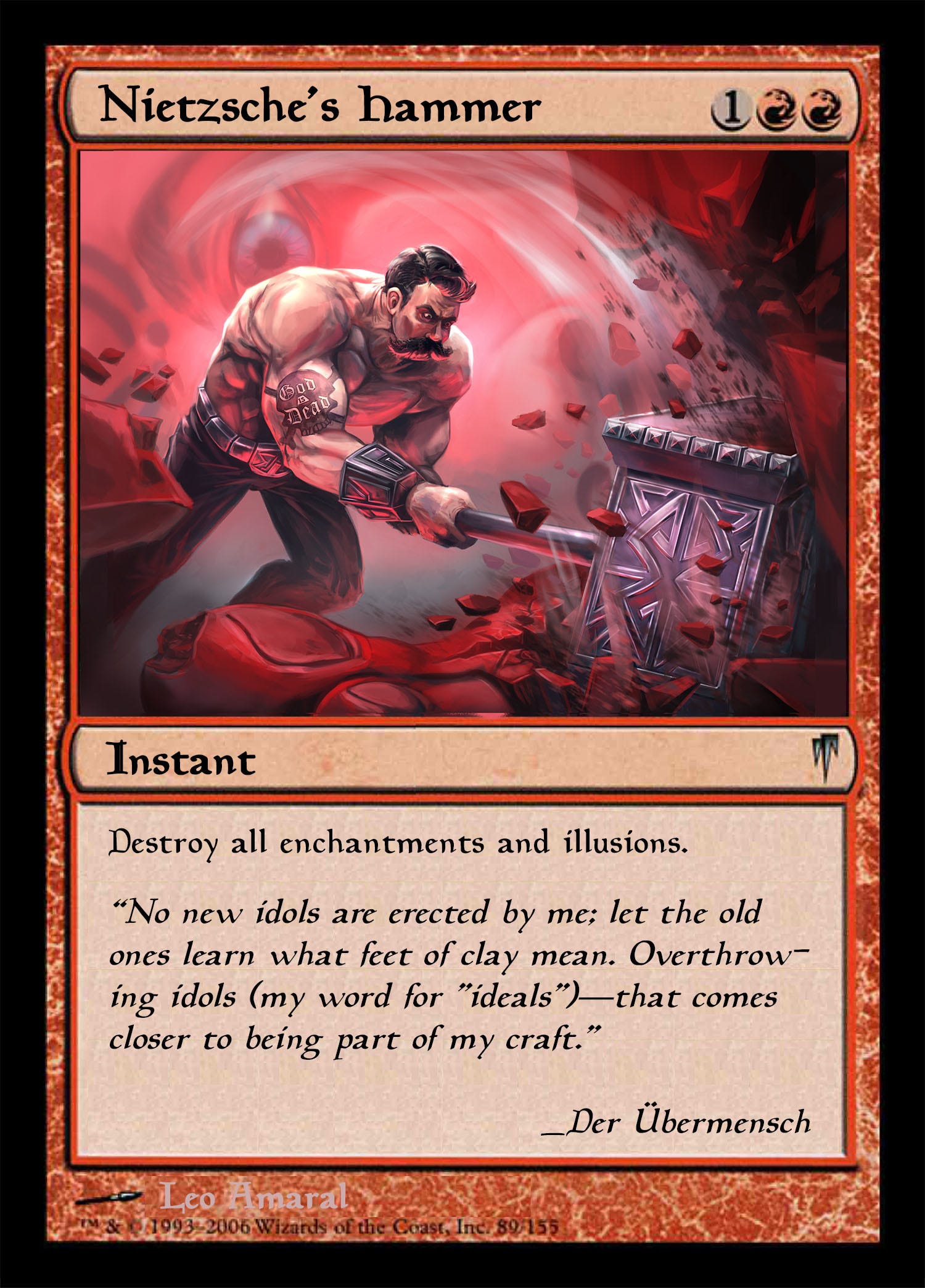 Nietzsche left his ubermensch vaguely defined, and the work in which it is discussed most extensively, Thus Spake Zarathustra, is widely believed to be the work most resembling the fevered ravings of a madman slipping ever closer to the edge of irreversible psychosis, as he in fact did a few years after completing it. Whatever other congenital illness of blood or brain that Nietzsche had managed to temper with his careful lifestyle, the syphilis was there too, eating away at his neural tissues, removing his inhibitions.