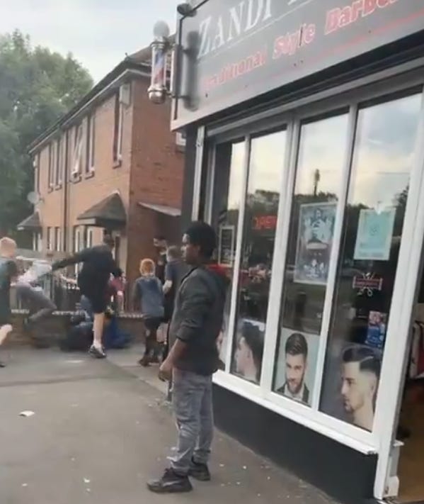 In Newcastle, what looks like a mob of teenage boys stomped an immigrant into the pavement outside a Turkish barber shop.