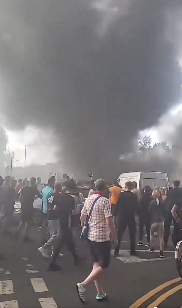 And no sooner than I write that, than the English rebels set a police station on fire.
