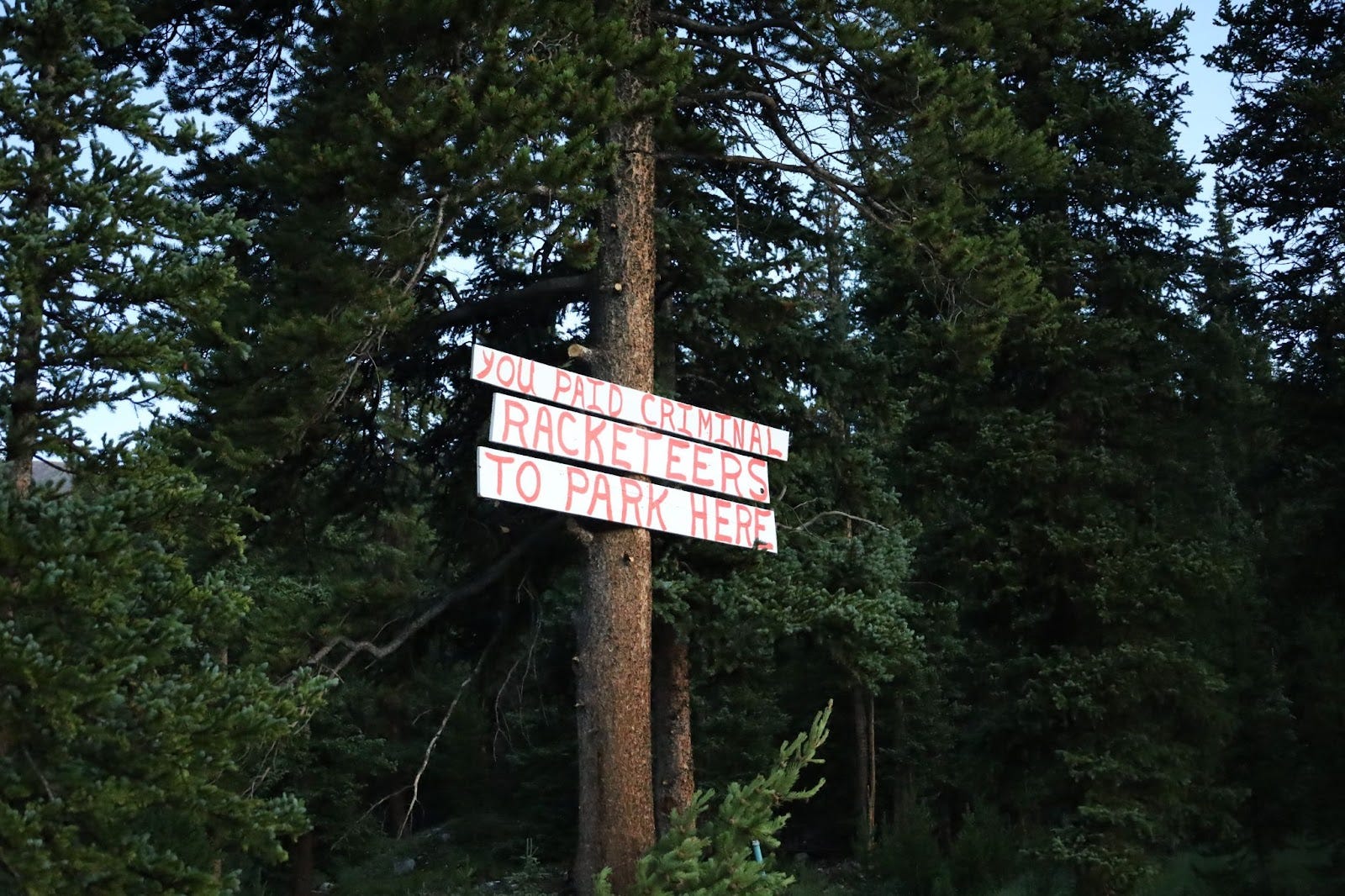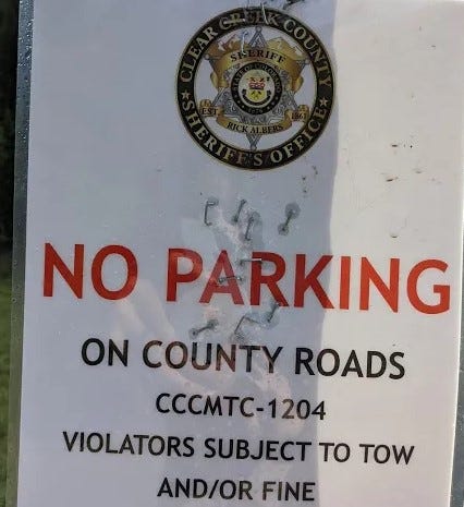 The gist is that the usurpers are trying to paint an illegal parking problem as an environmental one. A problem, by the way, that one Sheriff solved in their jurisdiction overnight with these signs:
