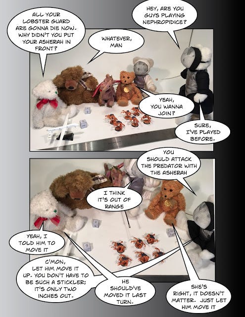 As a coda, after publishing my jeremiad against the perfusion of academia with the feminine essence, Prof. Brown – a woman in academia, who one might expect to have been offended, but was not, we are after all talking about an academic who is friends with Milo and Vox Day, so I really don’t think she cares what people think – sent me this Lobstercide webcomic that she created all the way back in 2017 (she is not only a scholar and a poet), showing what happens when girls insert themselves into the games that boys play. Here’s a panel to whet your appetite: